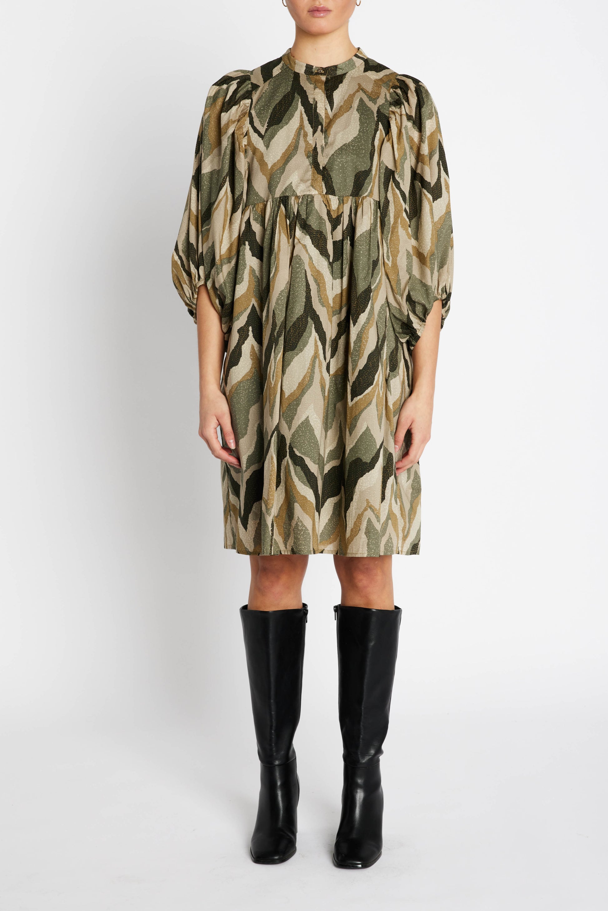 A casual dress in a unique print with a loose fit and elegant details. The dress falls lightly and is ideal for both everyday wear and special occasions.