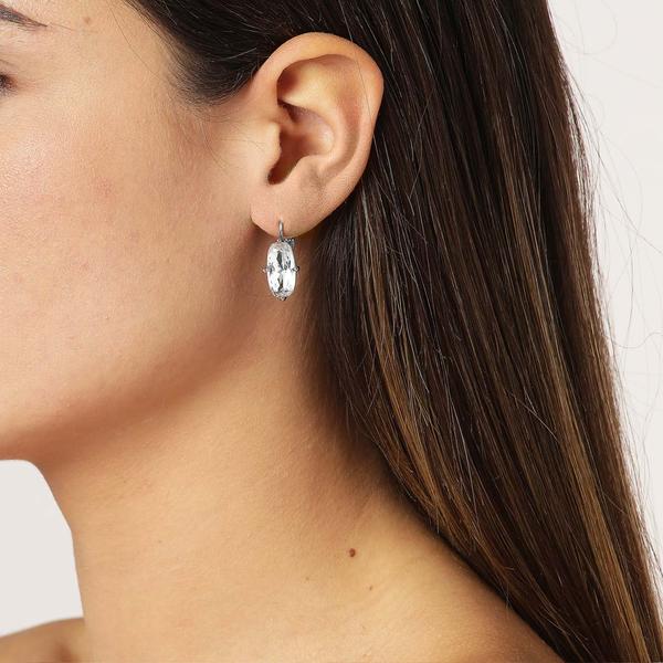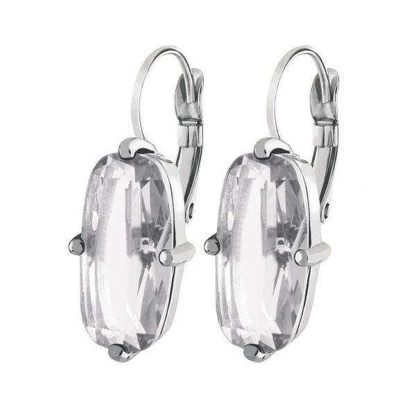 BARITA - Classic french hook earring with a rectangular facet cut crystal stone handset into the setting. Wear day or evening, a truly versatile piece. Here shown in a clear crystal and silver-tone version. Danish design, nickel free.