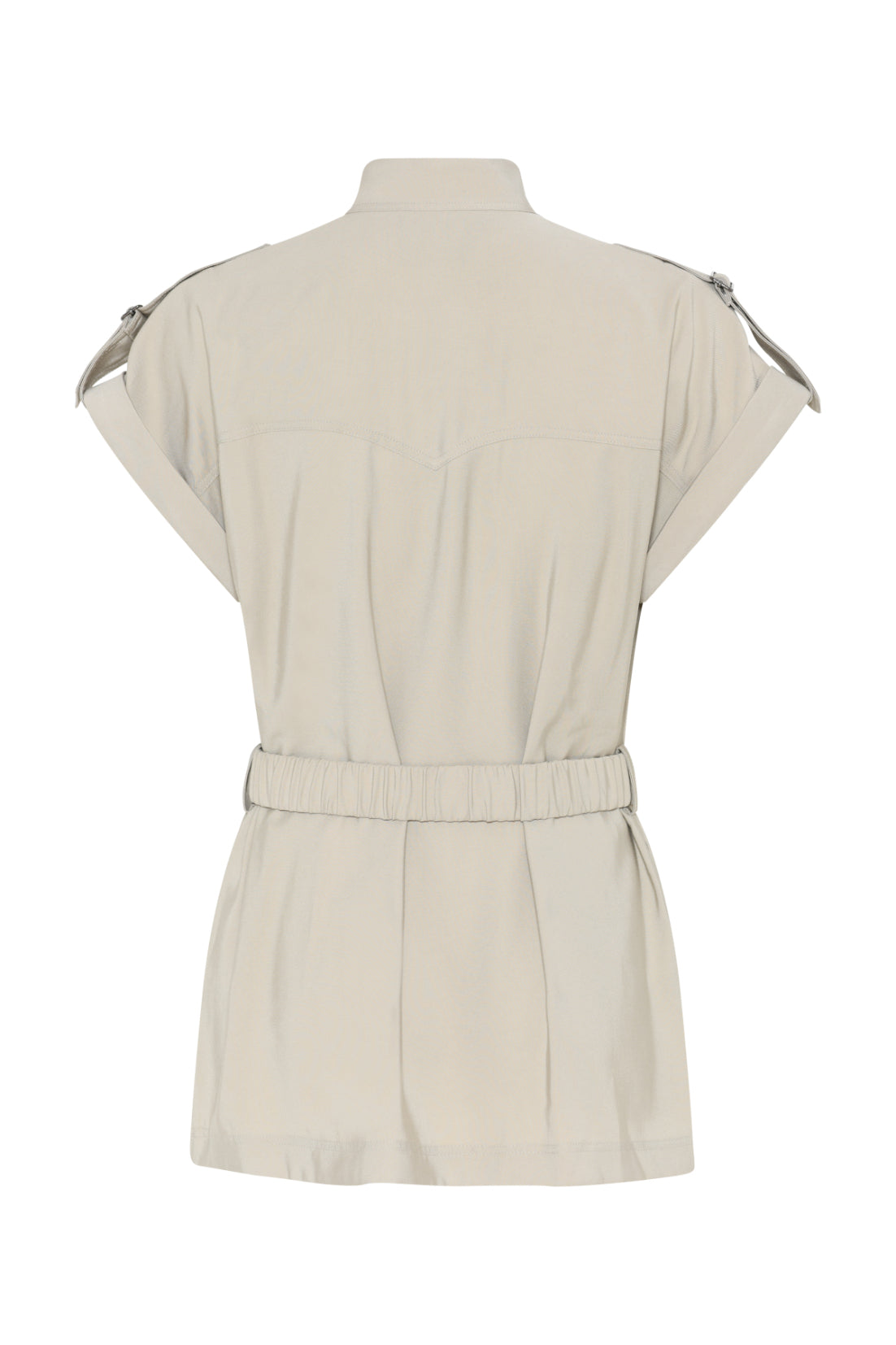 Utility-inspired shirt with a modern and sophisticated expression, designed with chest pockets, elastic belt, and shoulder details. The shirt accentuates your waist with a belt and provides a structured look.