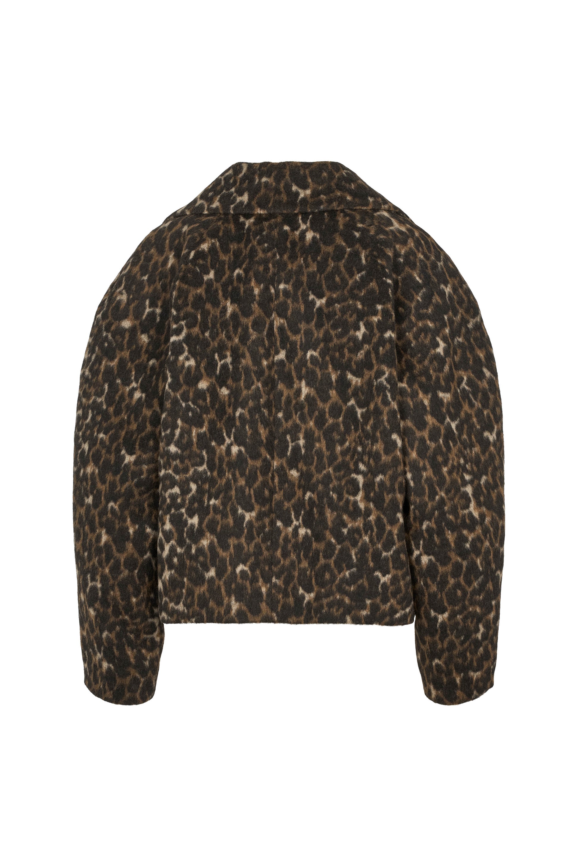 Marion is a short, double-breasted coat with wide lapels and a distinctive pattern that creates a modern statement in a simple, structured silhouette.