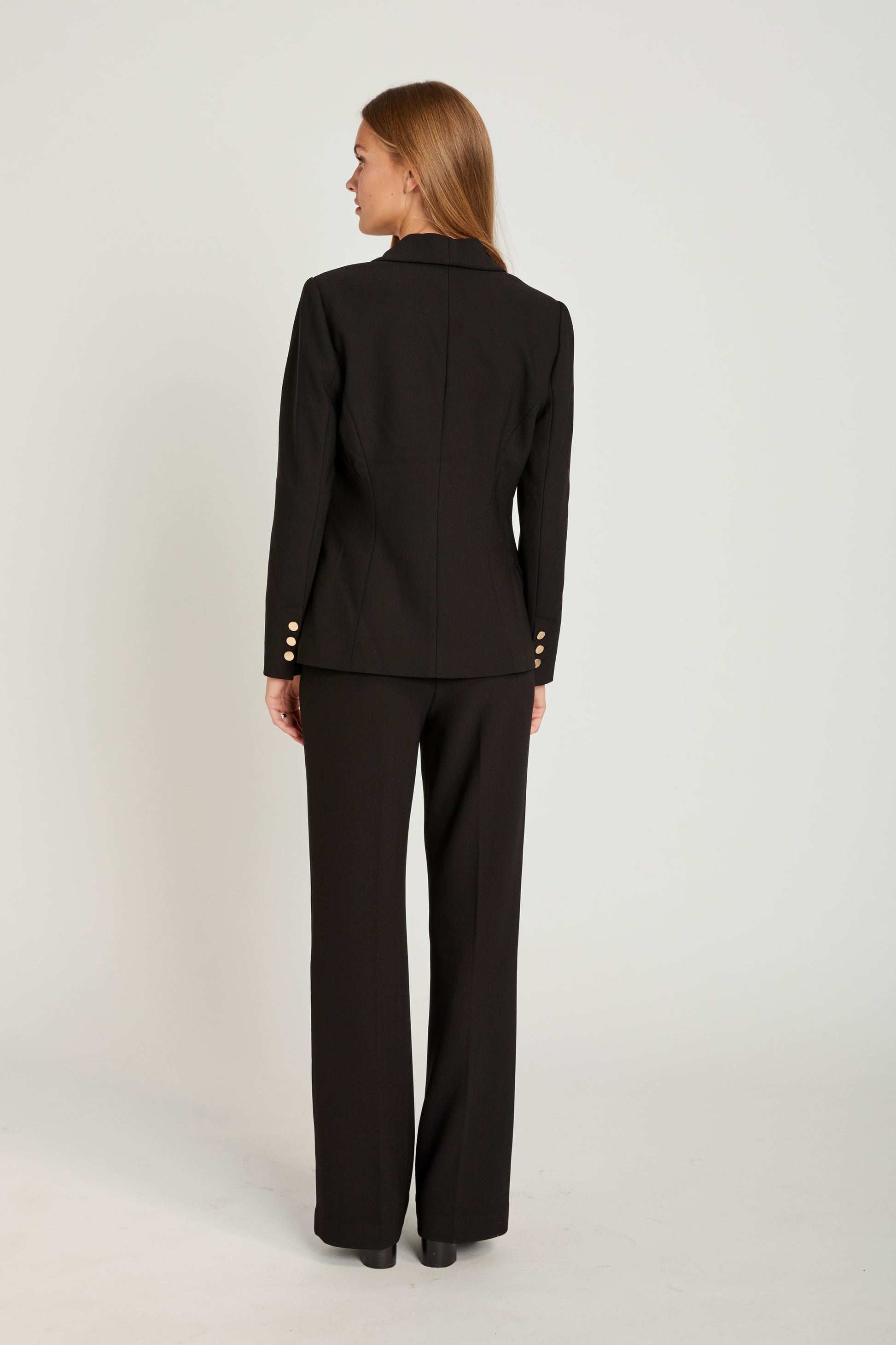 - Straight, wide legs